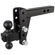 For 2 Inch Receiver; Lockable (Lock Sold Separate); 22 000 Pound Gross Trailer Weight; Adjustable 4 Inch Drop/ 4 Inch Rise; Non Swivel; Non-Extendable; 9 Inch Shank; With Black Powder Coated Hitch Ball; Dual Ball - 2 Inch and 2 5/16 Inch; Steel; With Hitch Pin