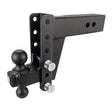 For 3 Inch Receiver; Lockable (Lock Sold Separate); 22 000 Pound Gross Trailer Weight; Adjustable 6 Inch Drop/ 6 Inch Rise; Non Swivel; Non-Extendable; 8 Inch Shank; With Black Powder Coated Hitch Ball; Dual Ball - 2 Inch and 2 5/16 Inch; Steel; With Hitch Pin